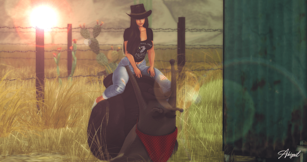 So much fun! These Slimy Snail Sppeders are a blast to play with! They are by MadPea and can be found at the Access Event. The event closes December 7th. 11 of these lil fellers in the gacha including one RARE. I chose to ride the Clint Slimwood because I liked his hat lol